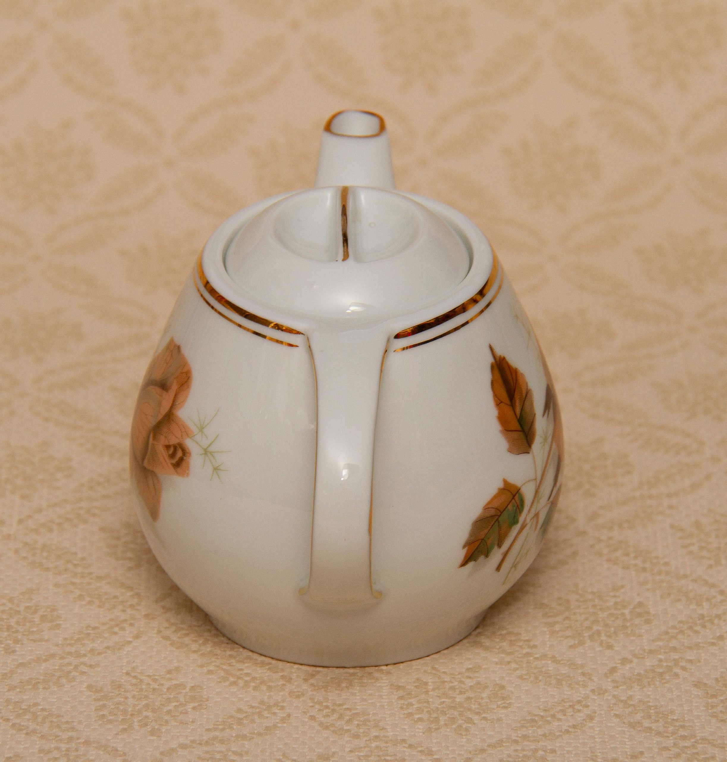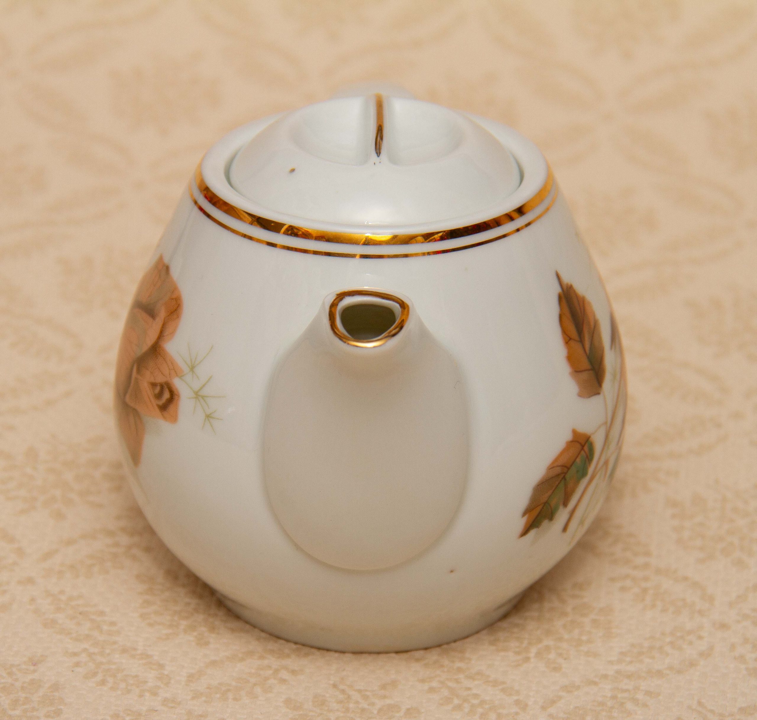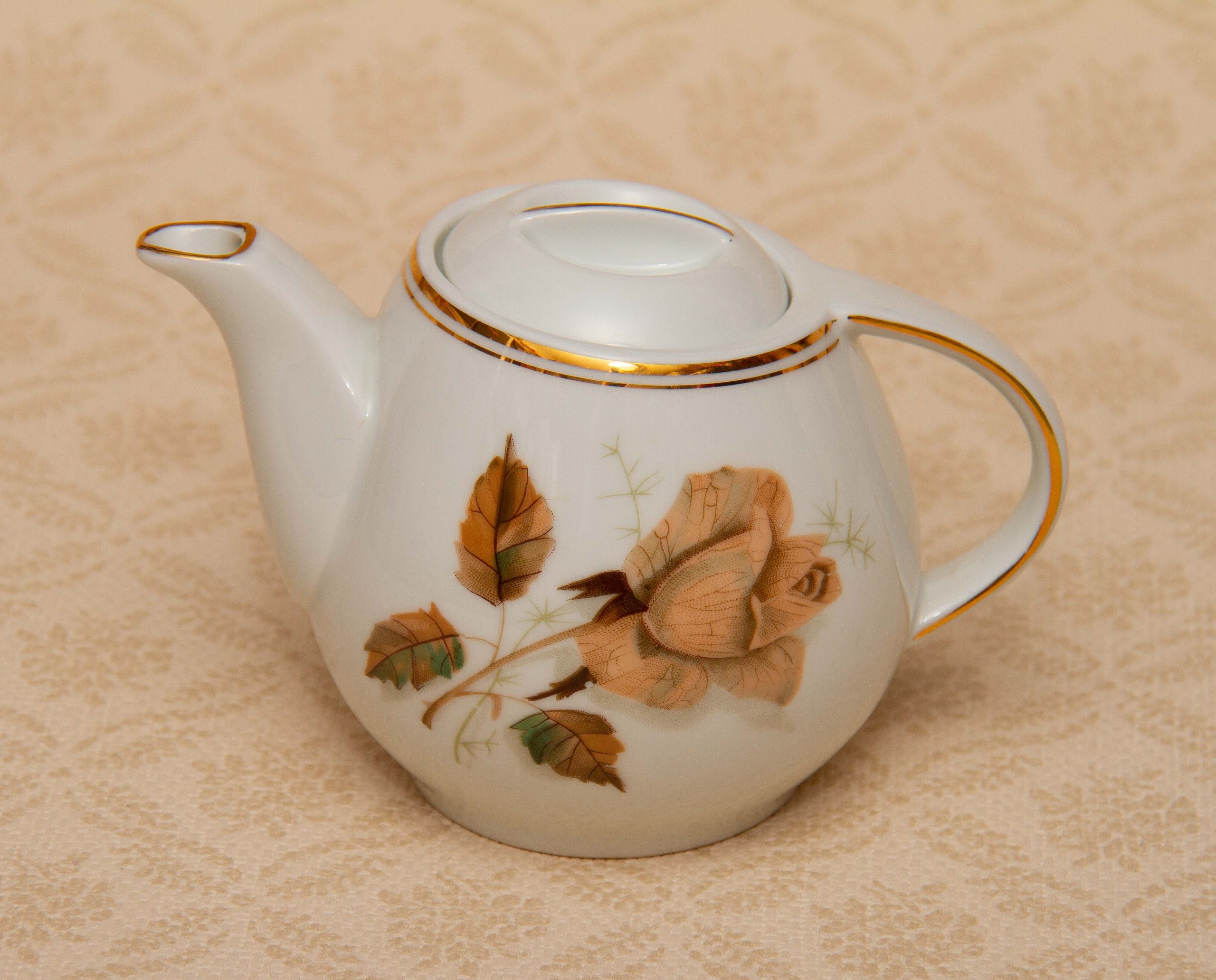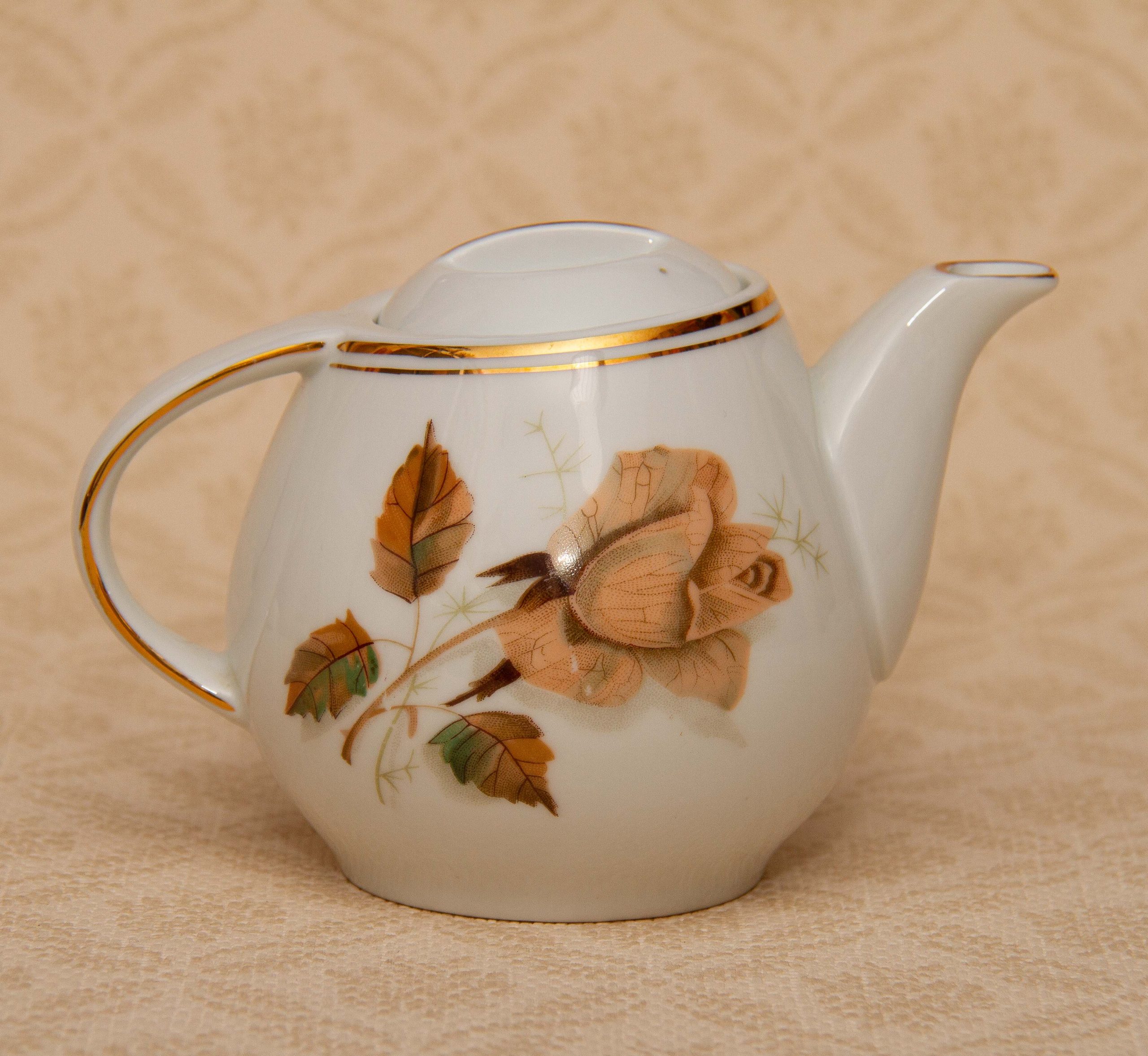 A vintage Wawel Pottery small teapot with a rose and leaf pattern on. Made in Poland