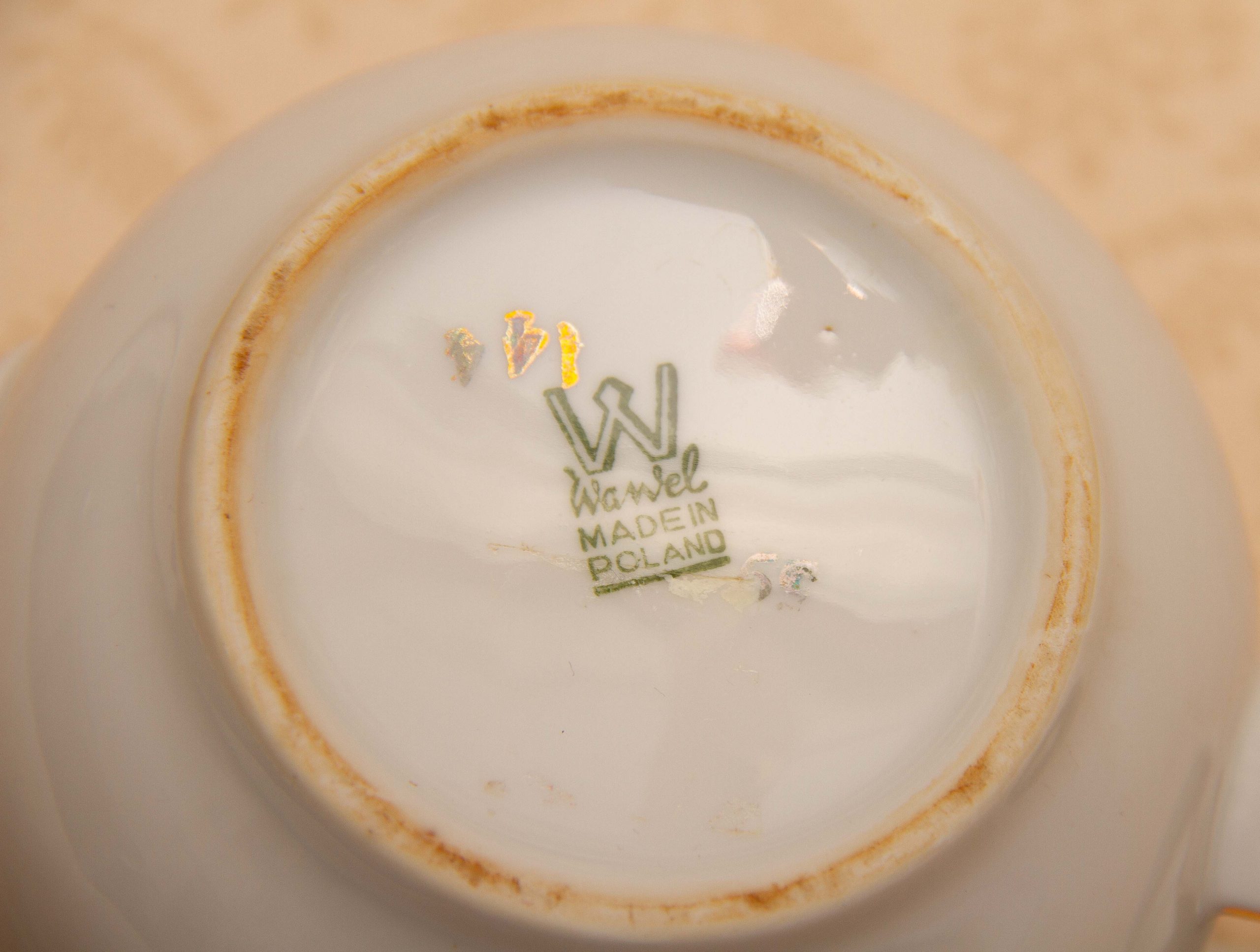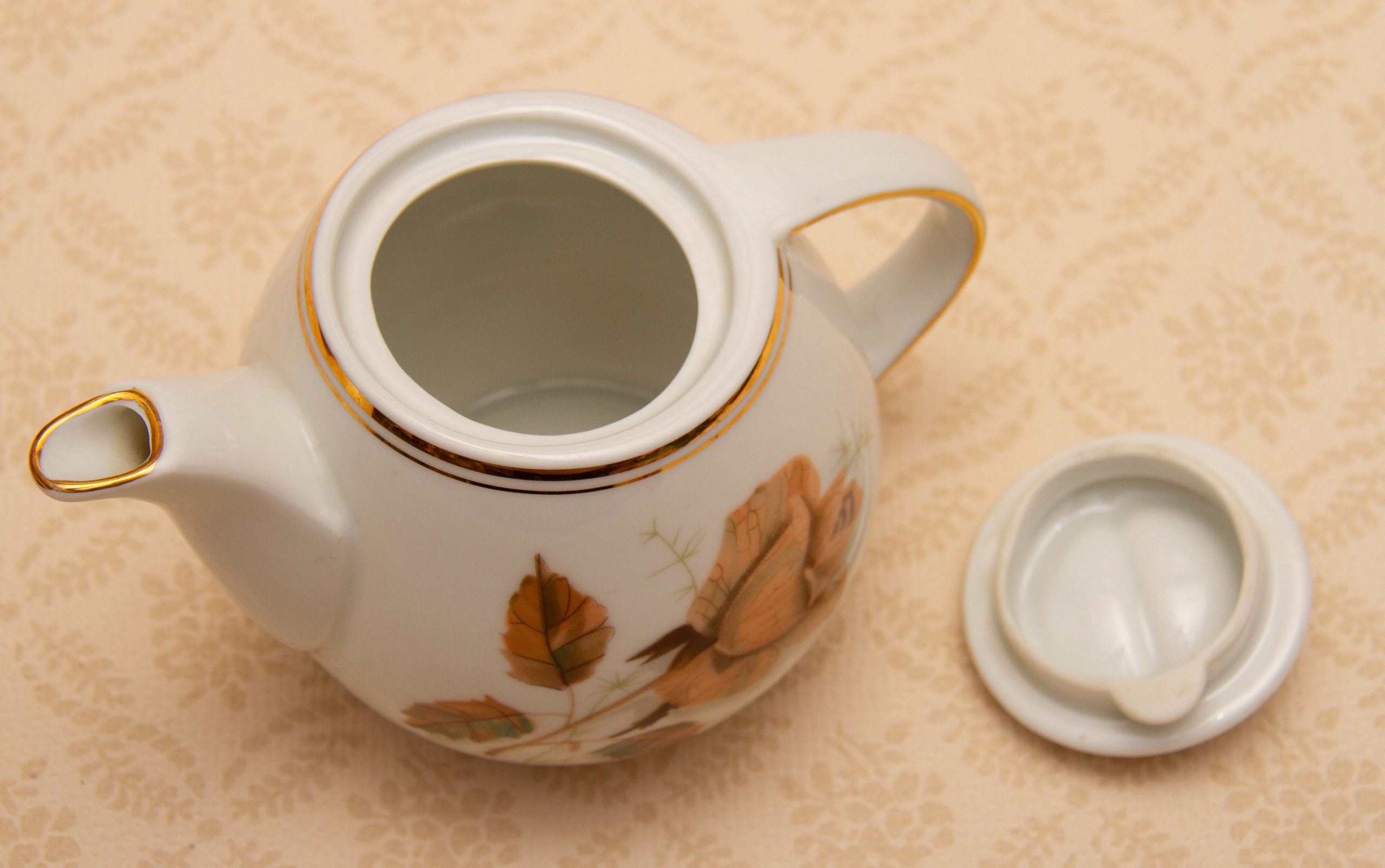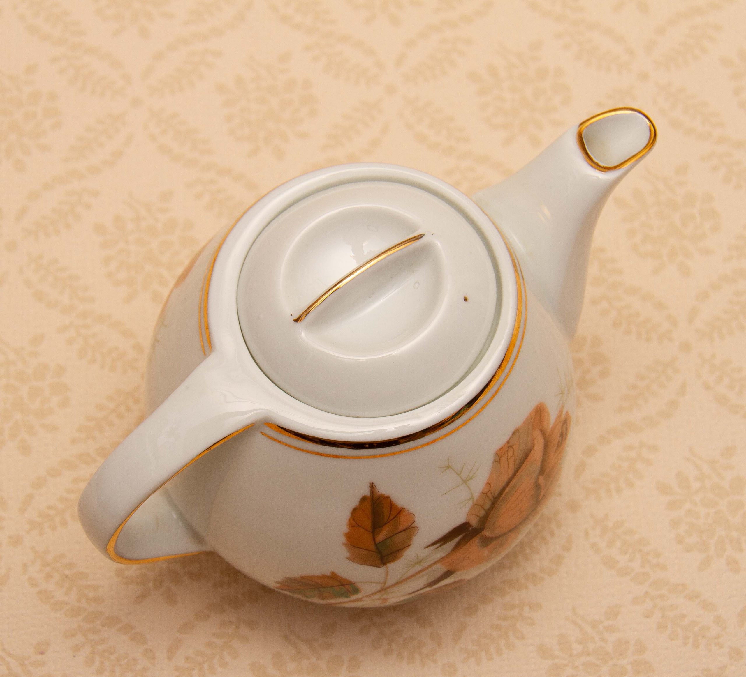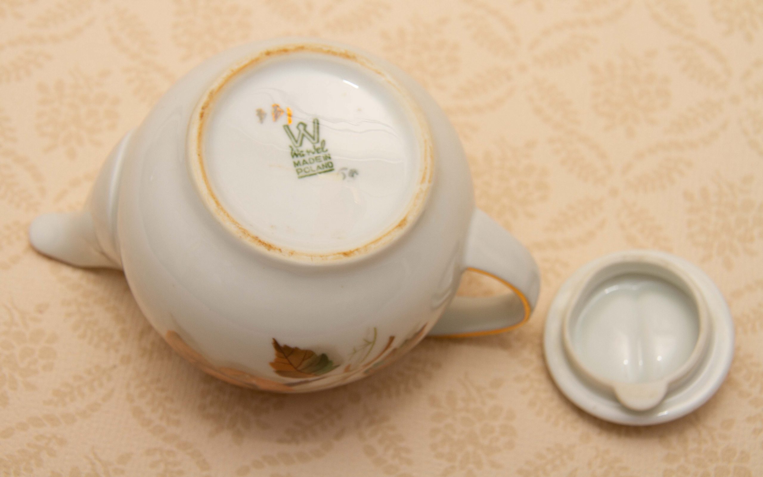 A vintage Wawel Pottery small teapot with a rose and leaf pattern on. Made in Poland