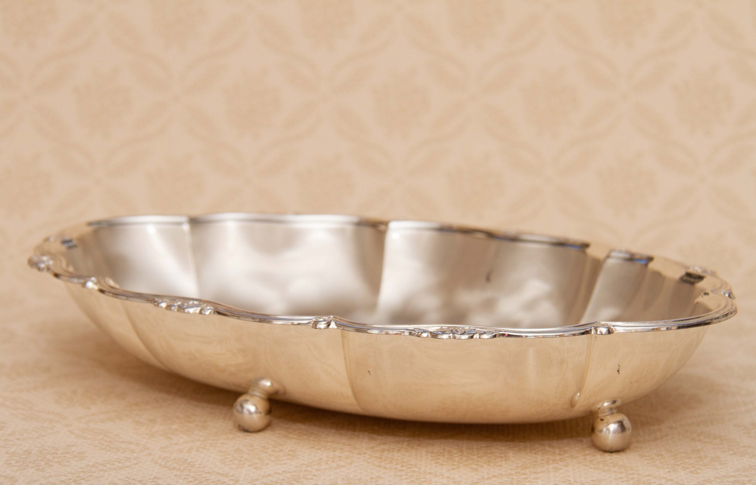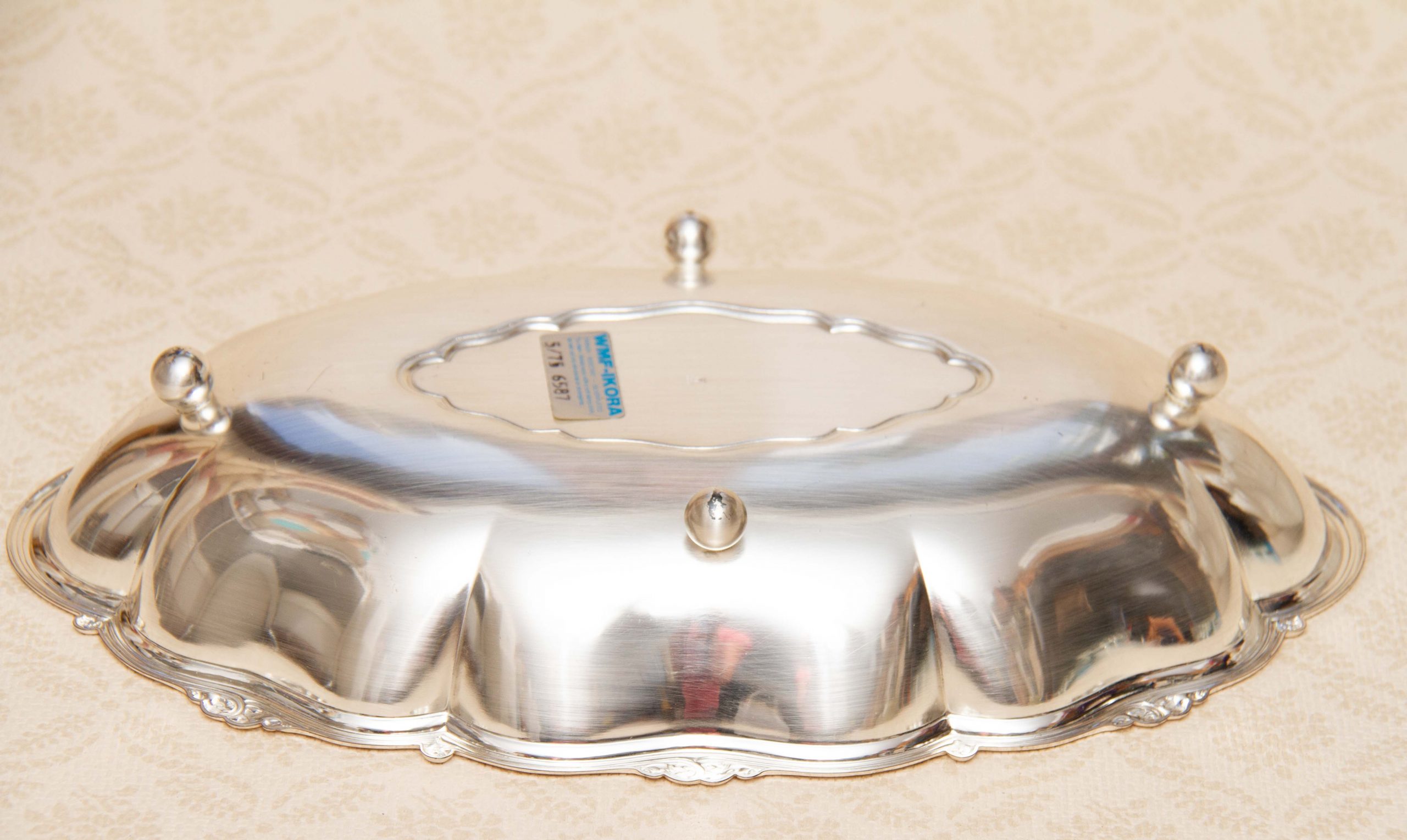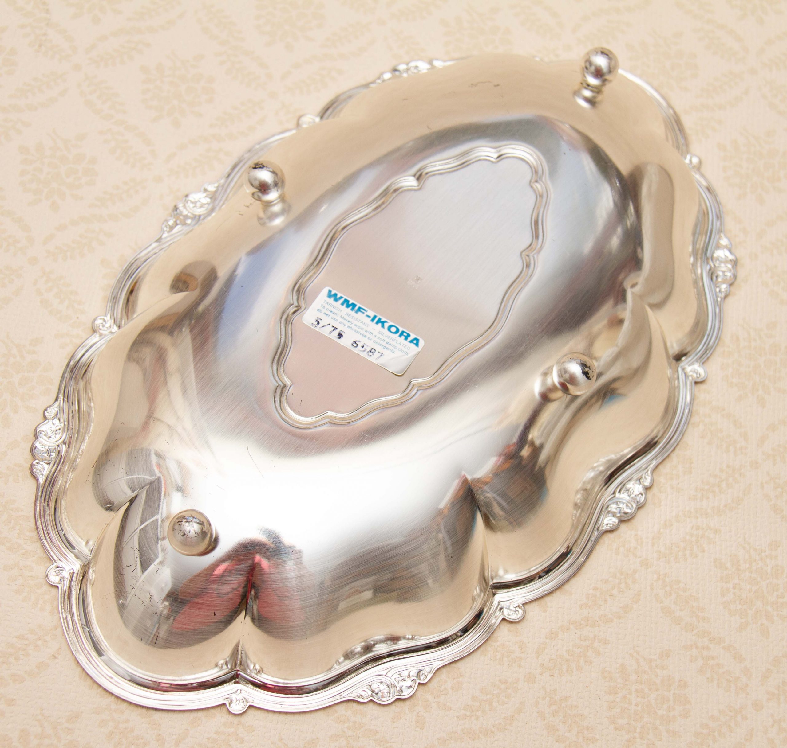 A vintage WMF Ikora silver plated oval dish on ball feet