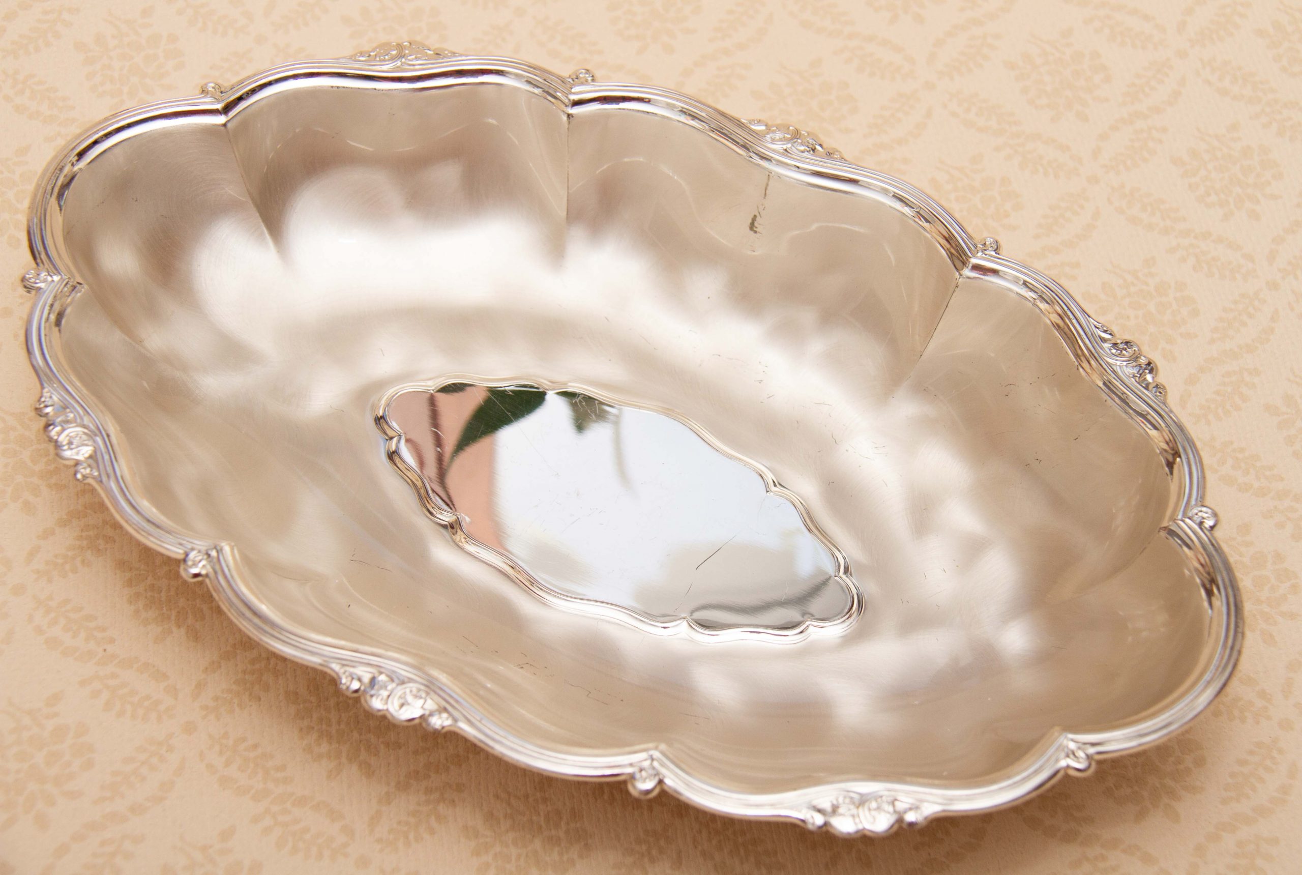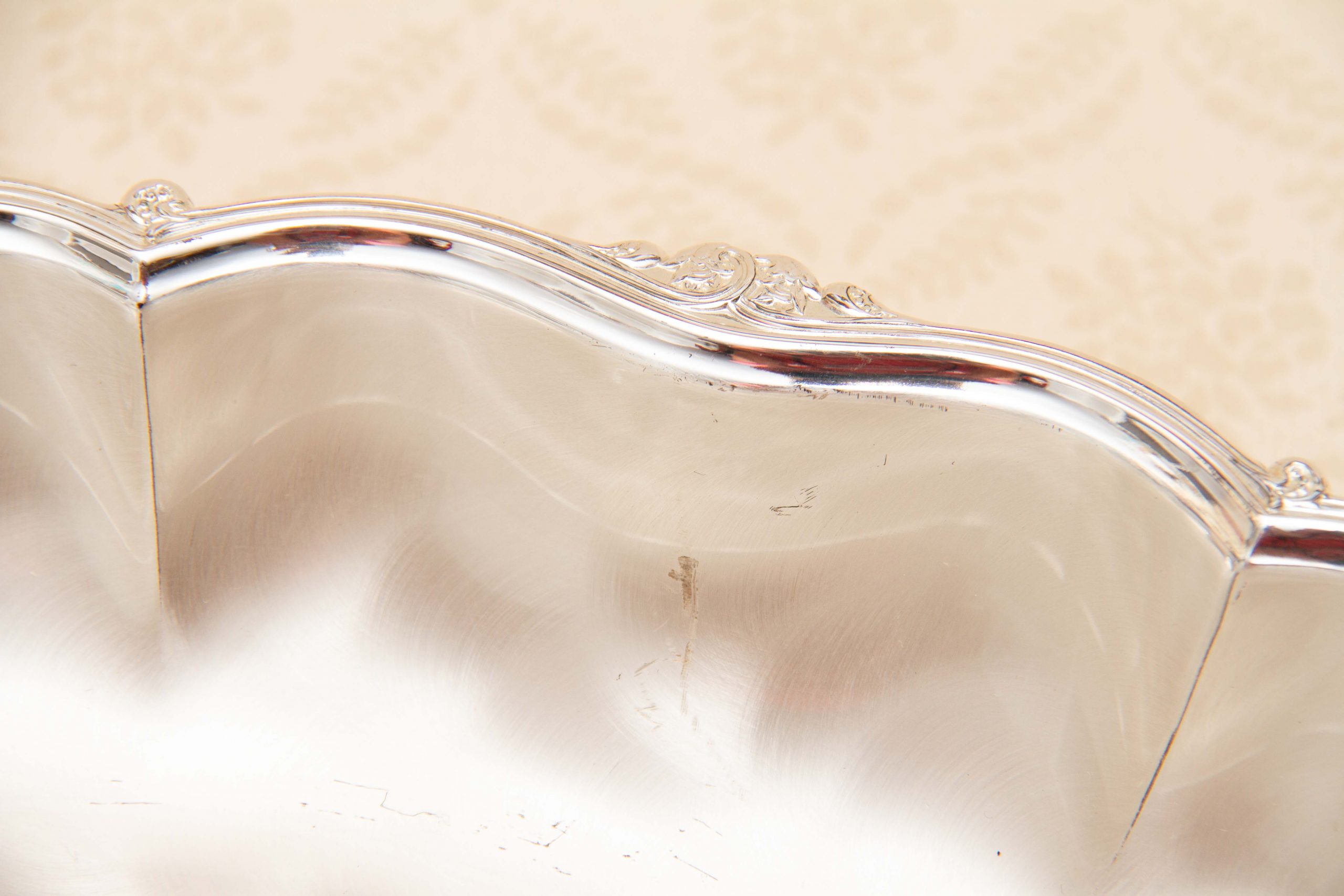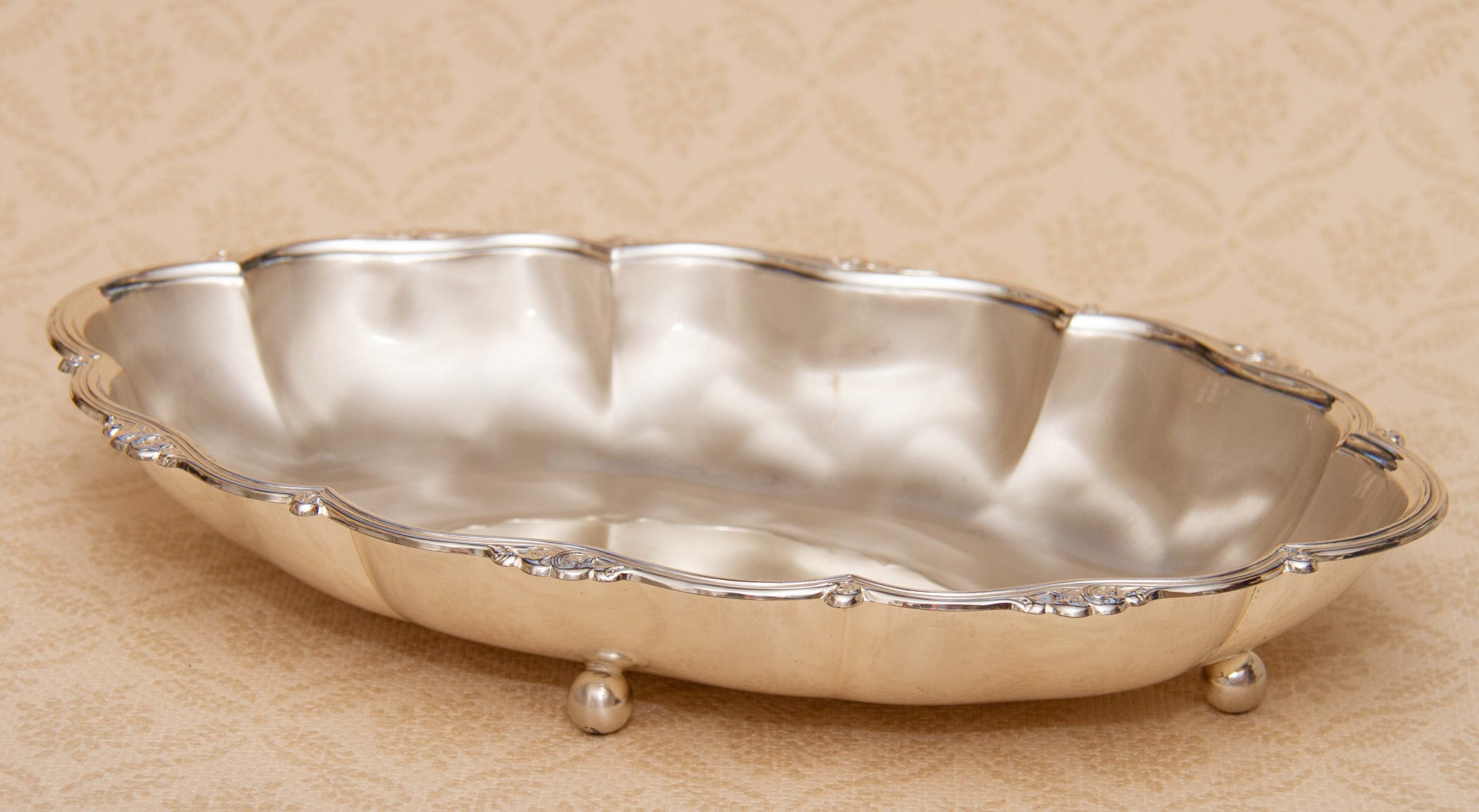 A vintage WMF Ikora silver plated oval dish on ball feet
