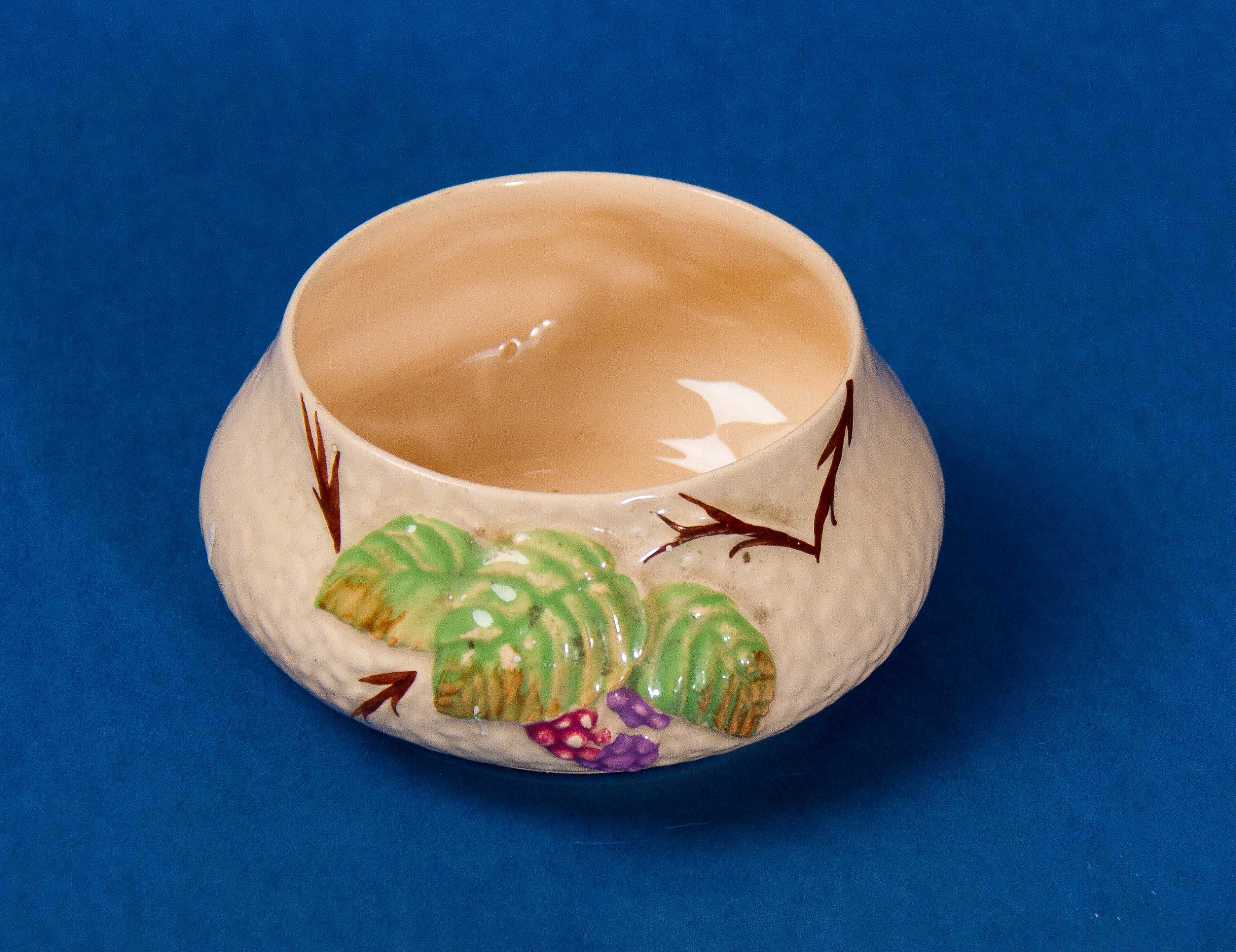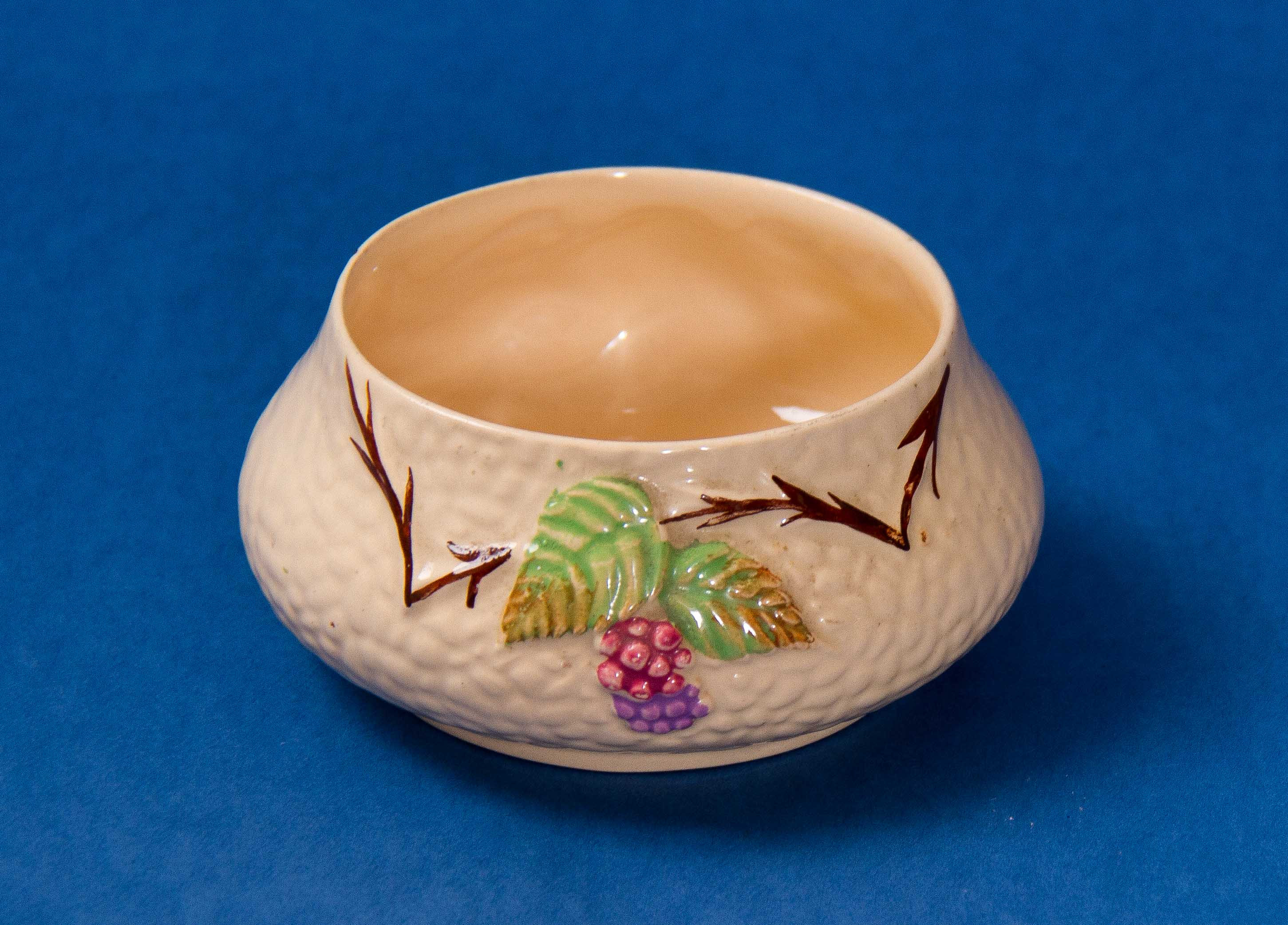 A Wade Bramble pattern bowl with berries and leaves pattern. Possibly a sugar bowl.