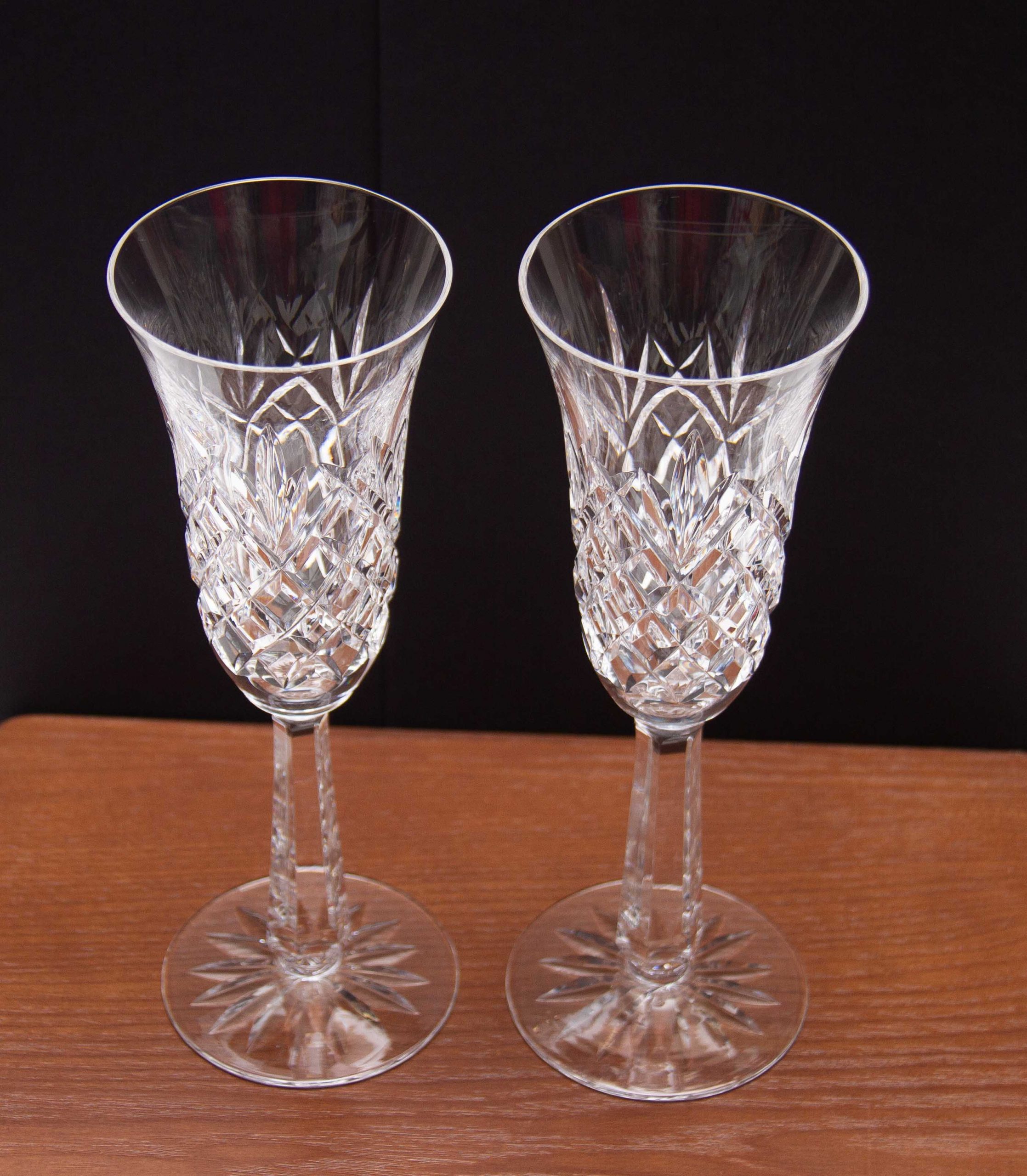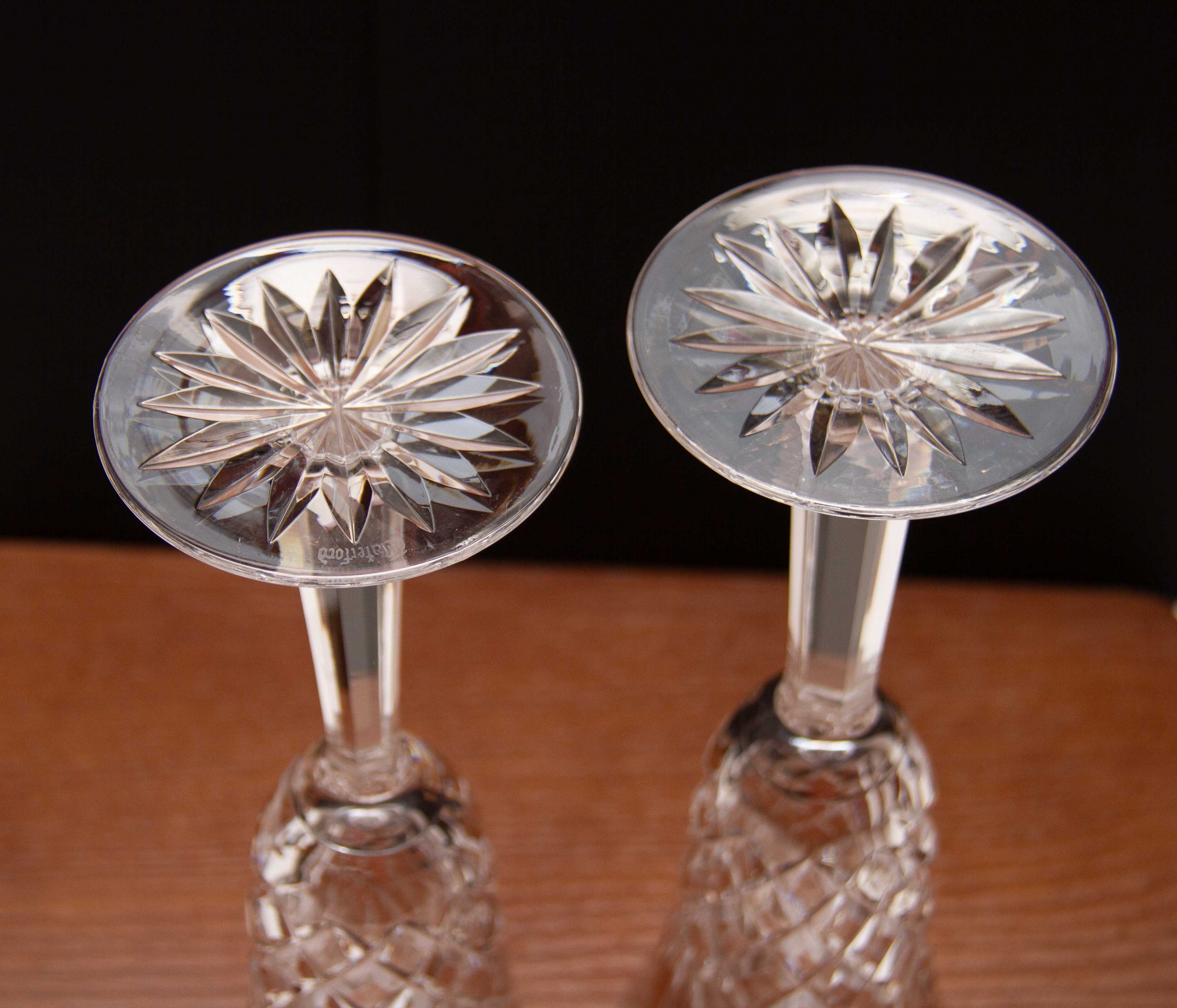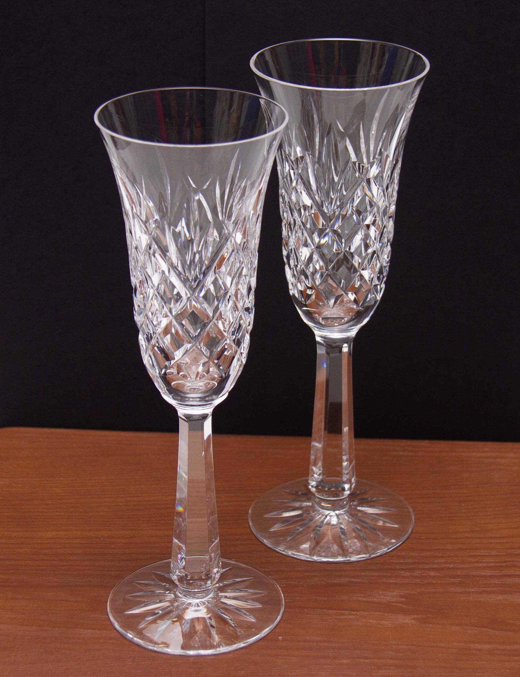 A pair of Waterford Crystal Champagne flutes in the Drogheda design, Both signed on the base.