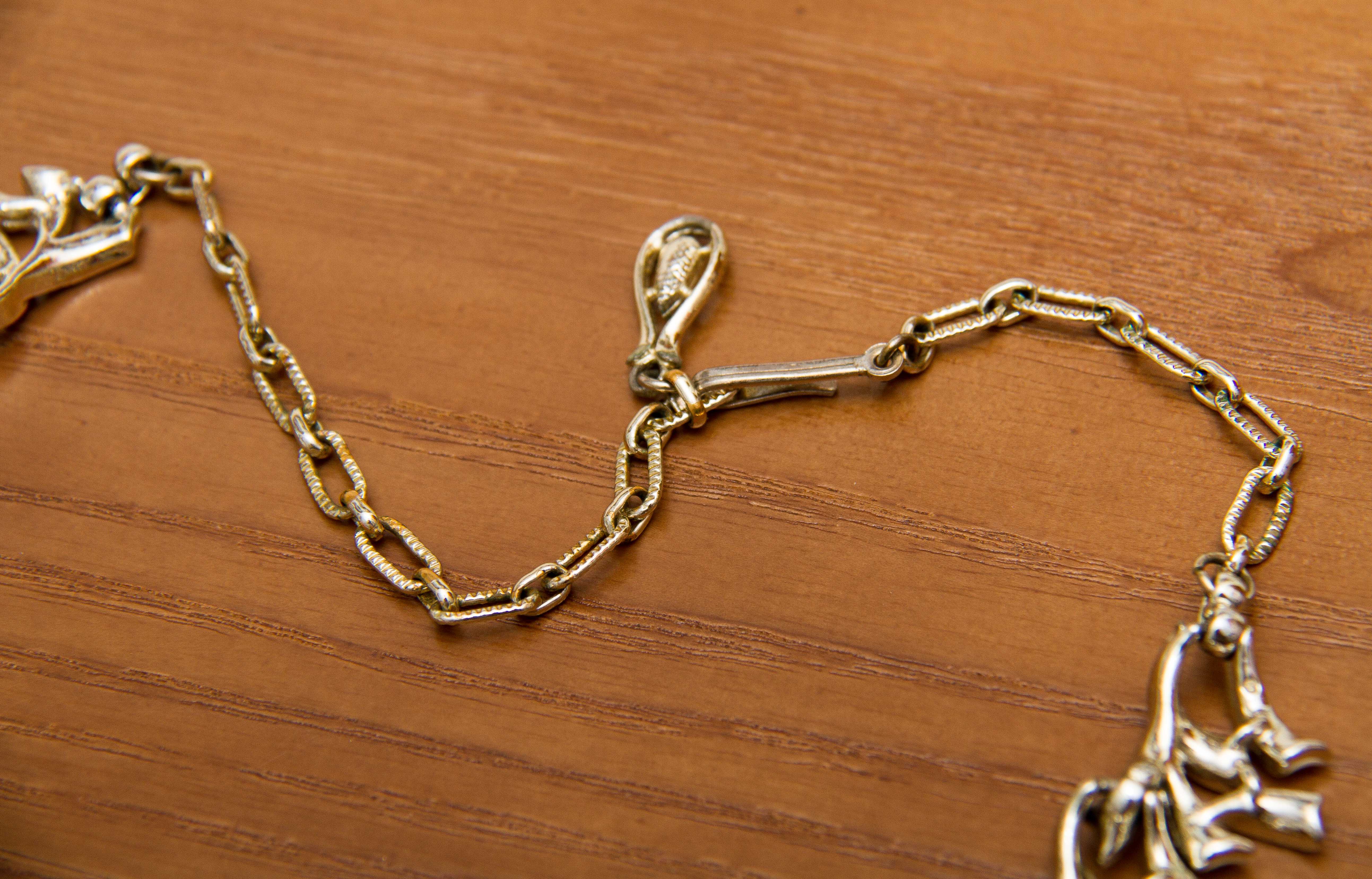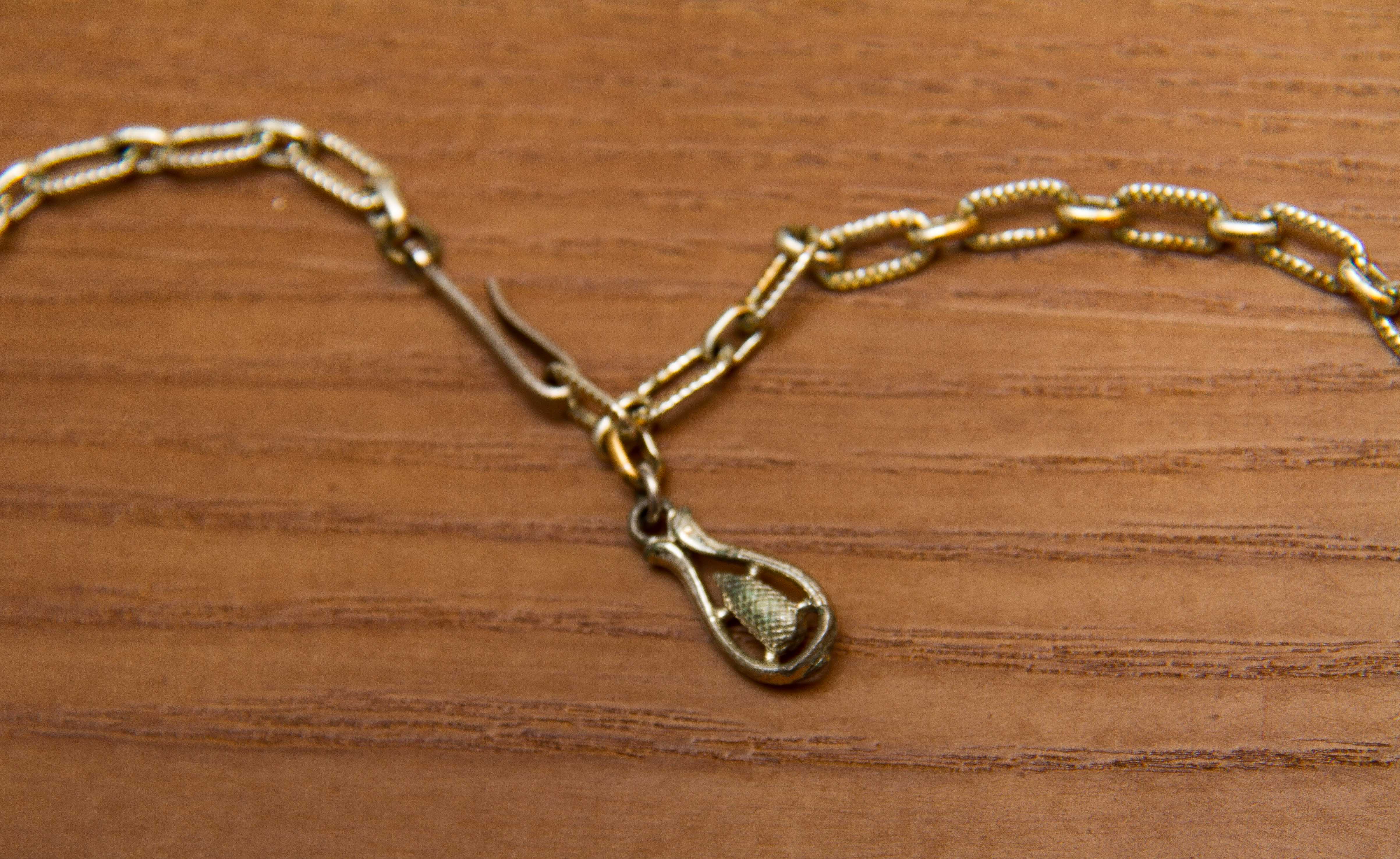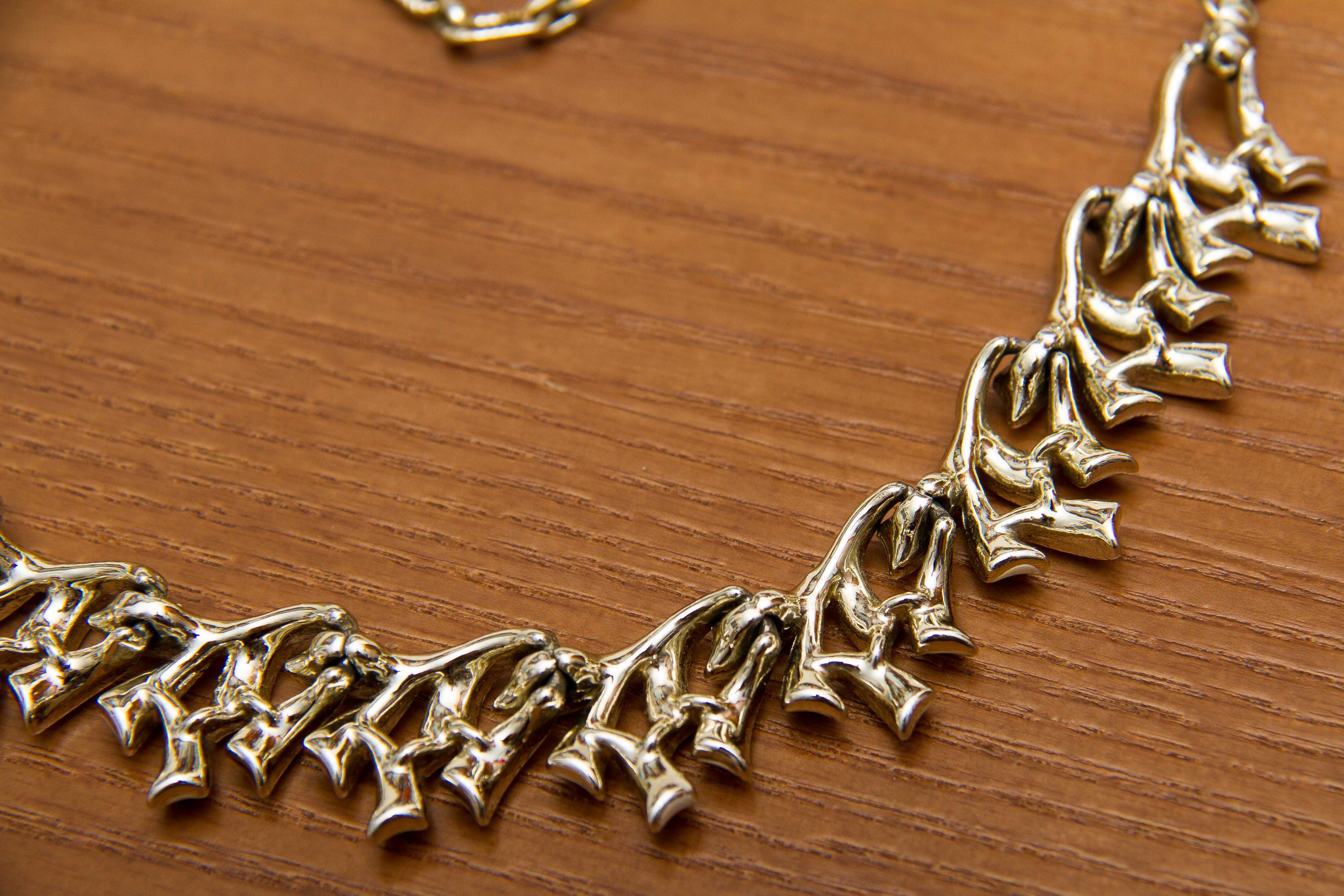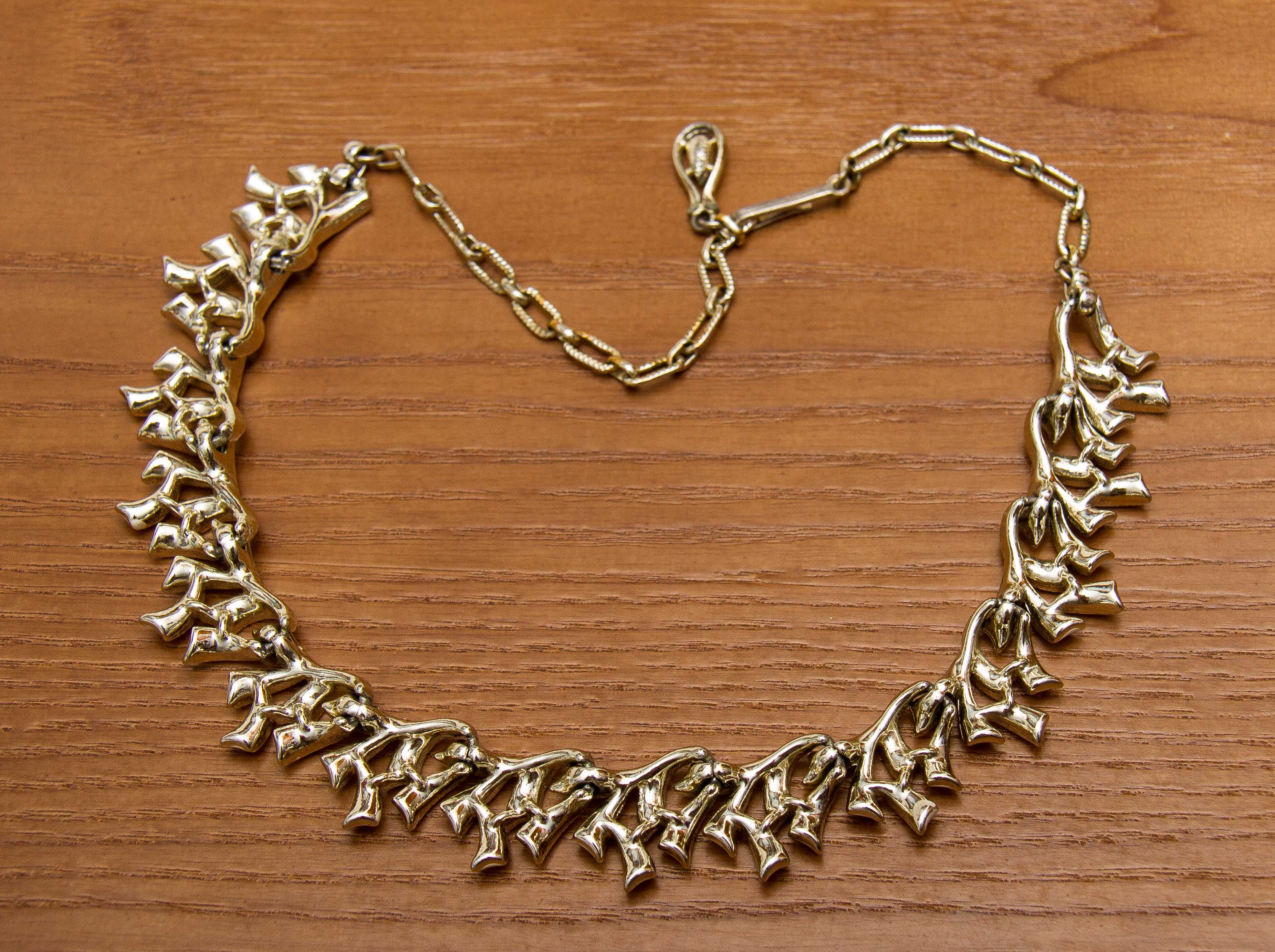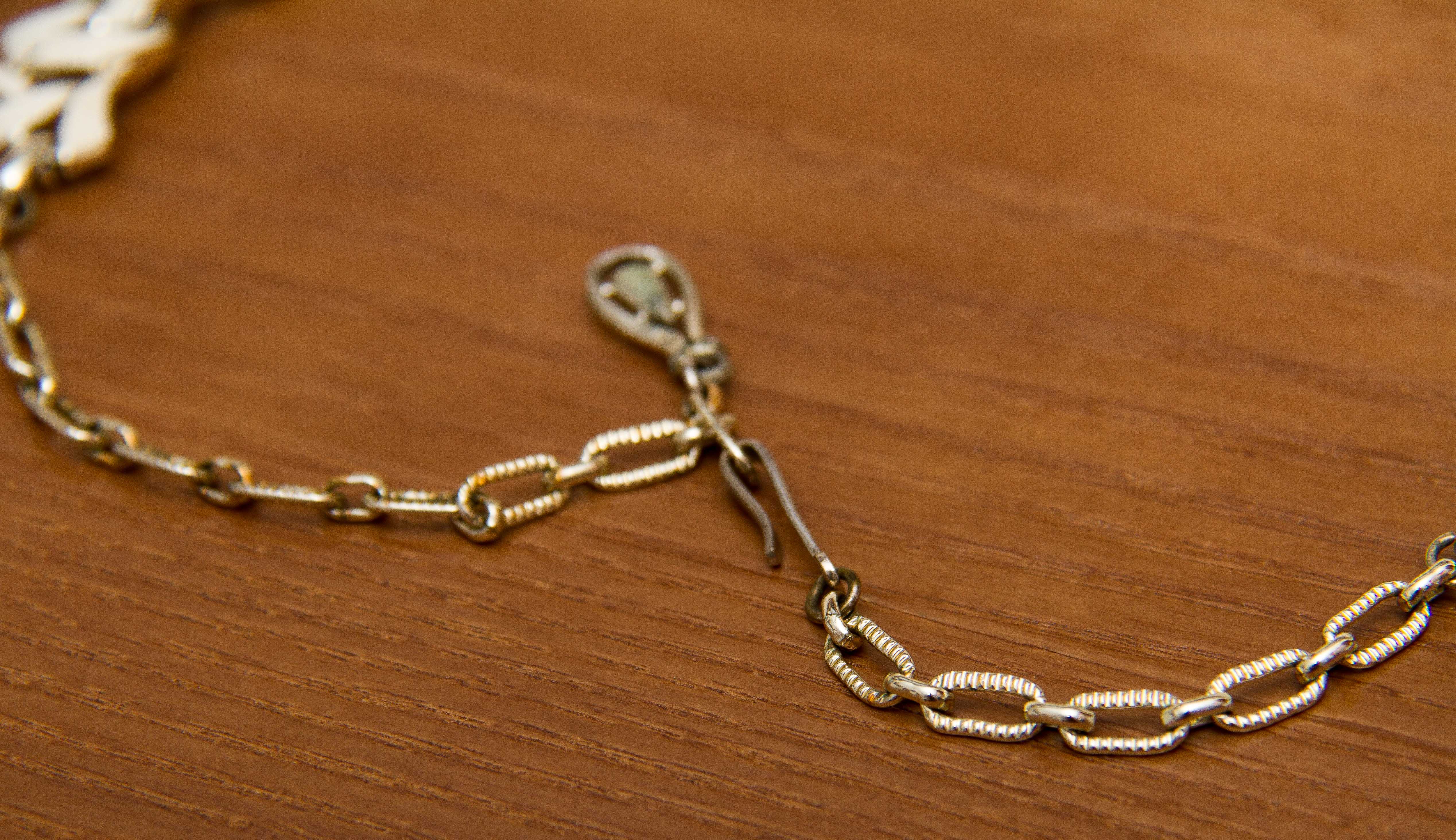 A vintage necklace, white metal with white enamel. Adjustable, with a hook fastening.