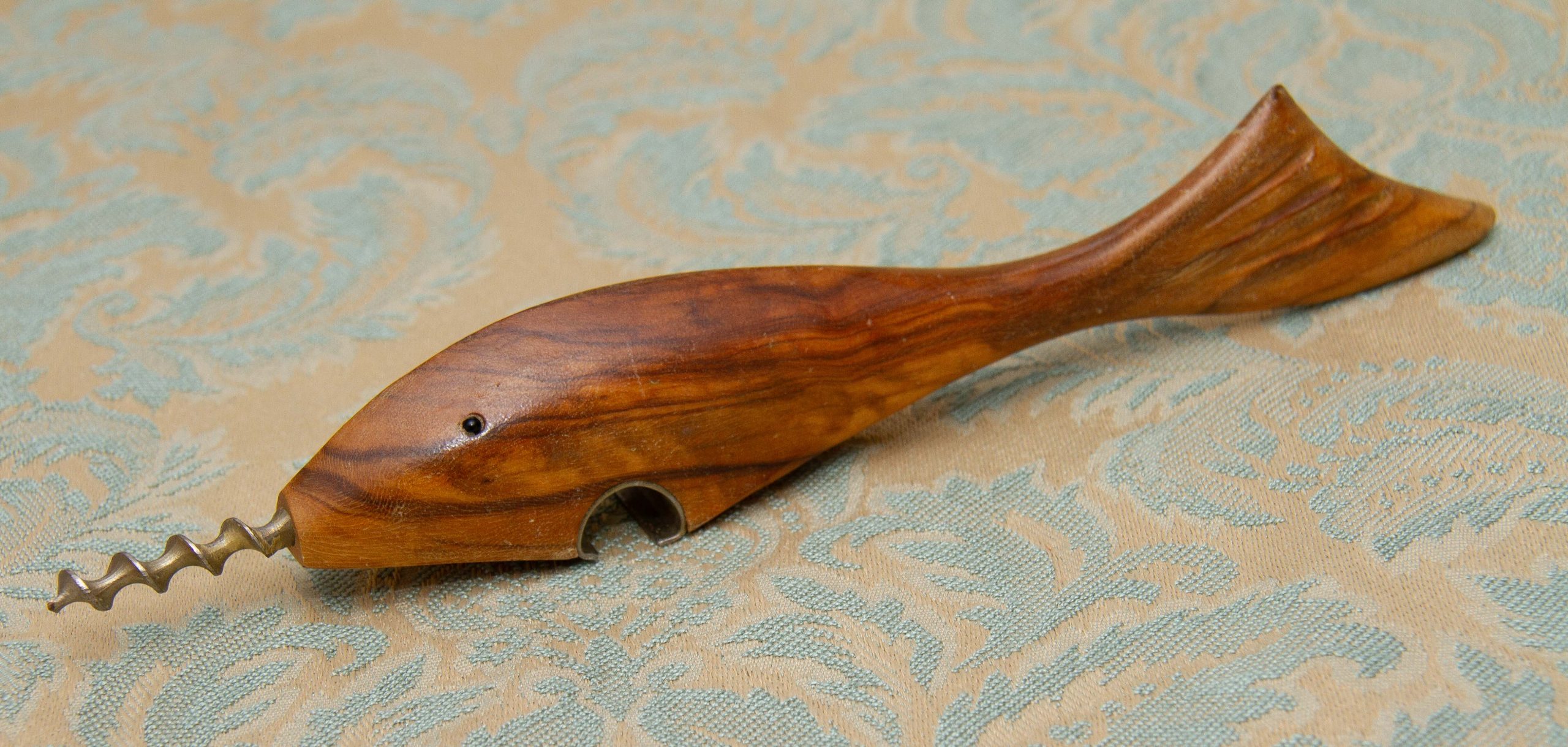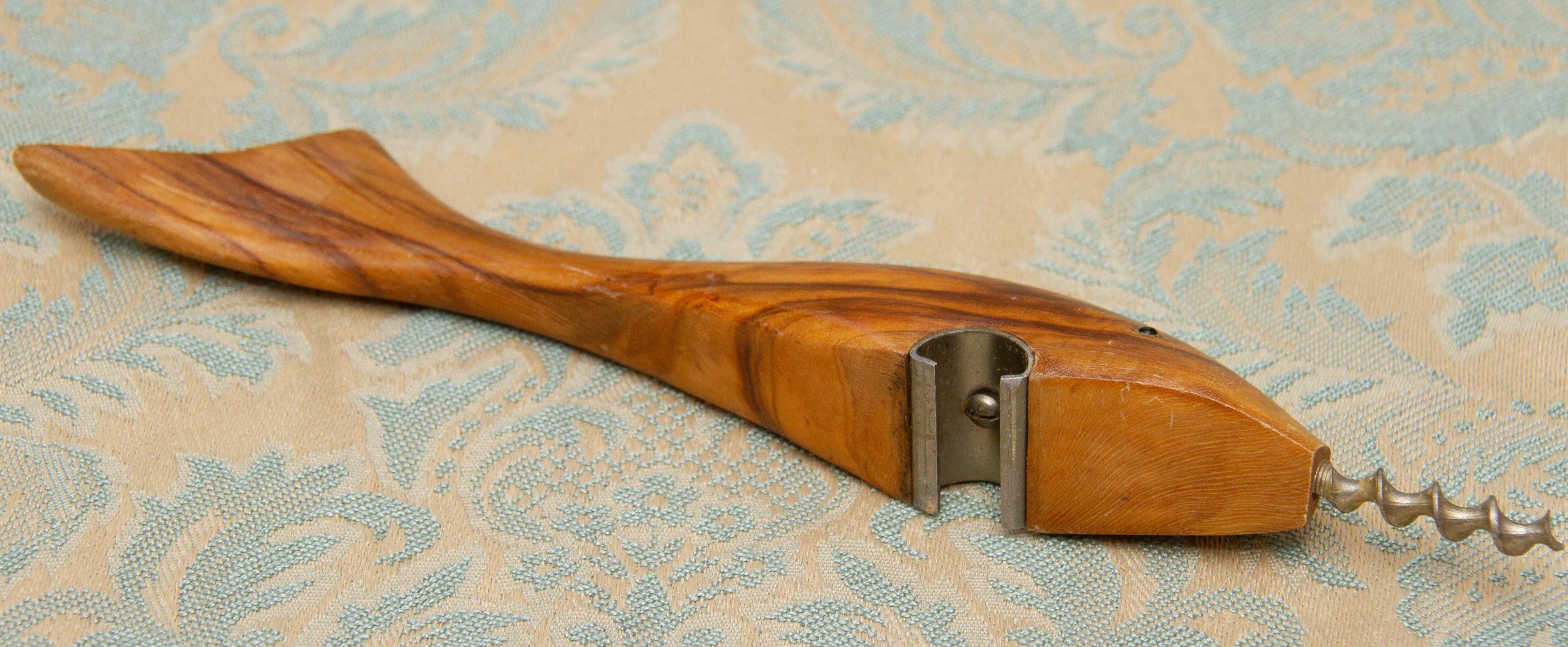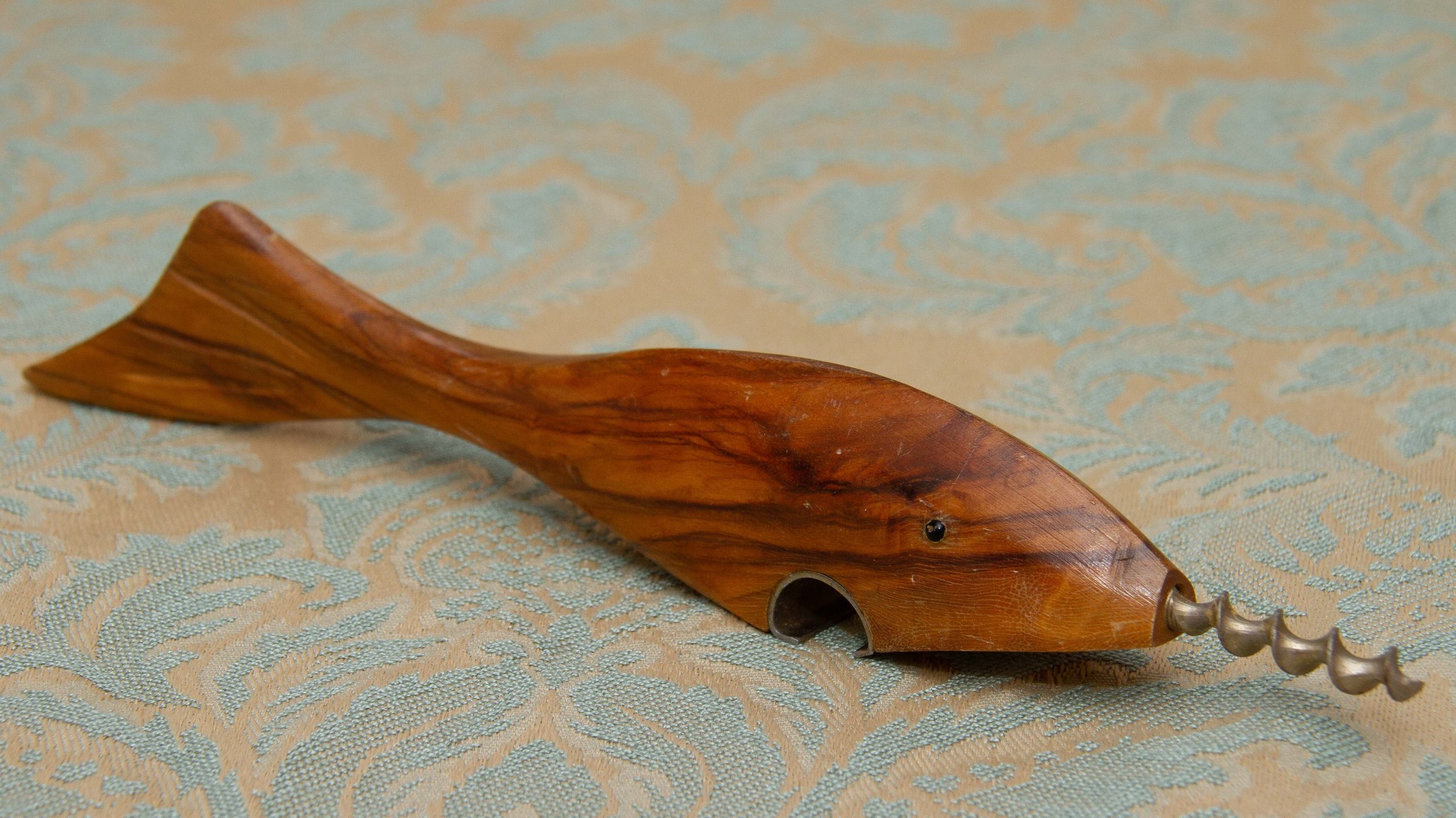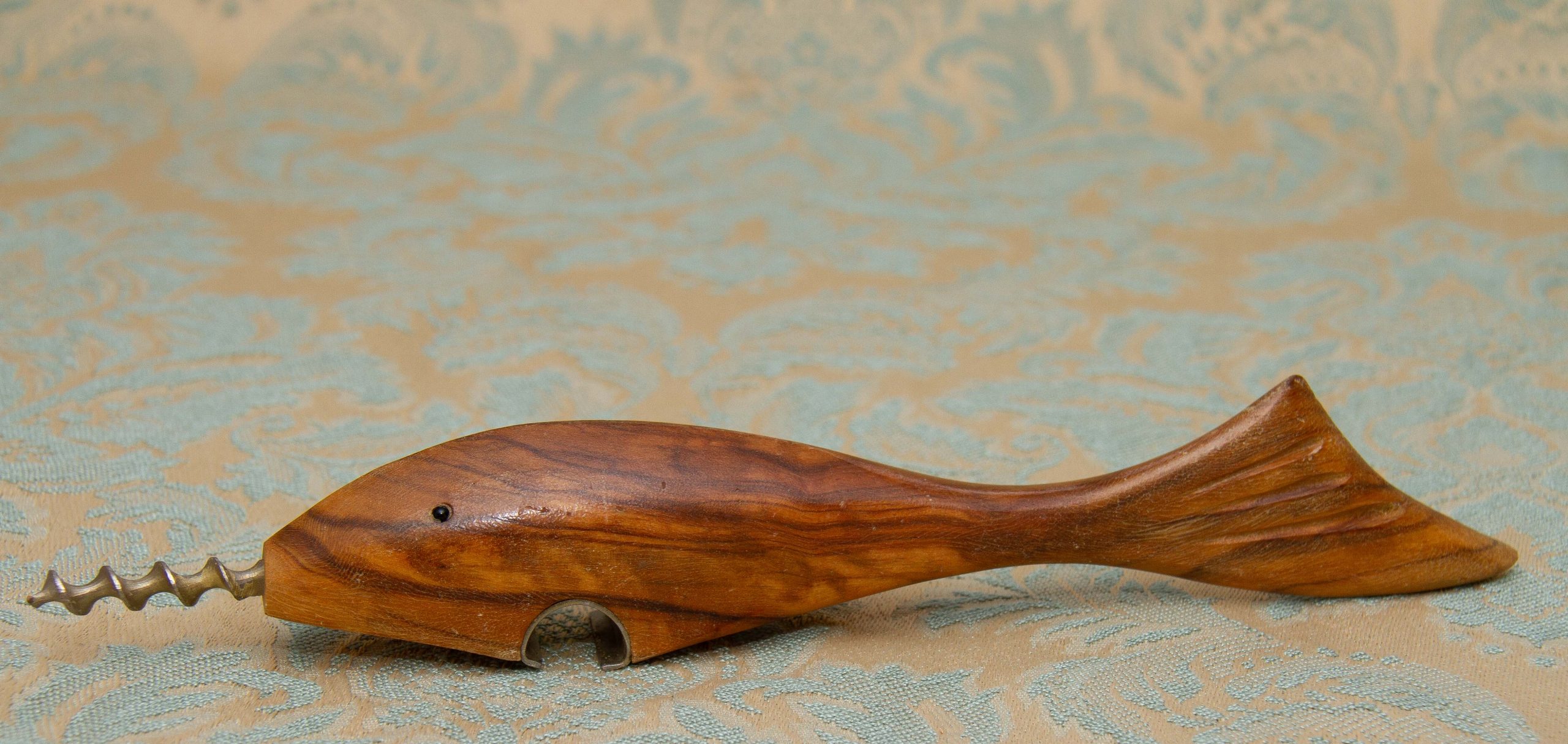A vintage wooden shark shaped corkscrew and bottle opener, the perfect addition to any cocktail bar.