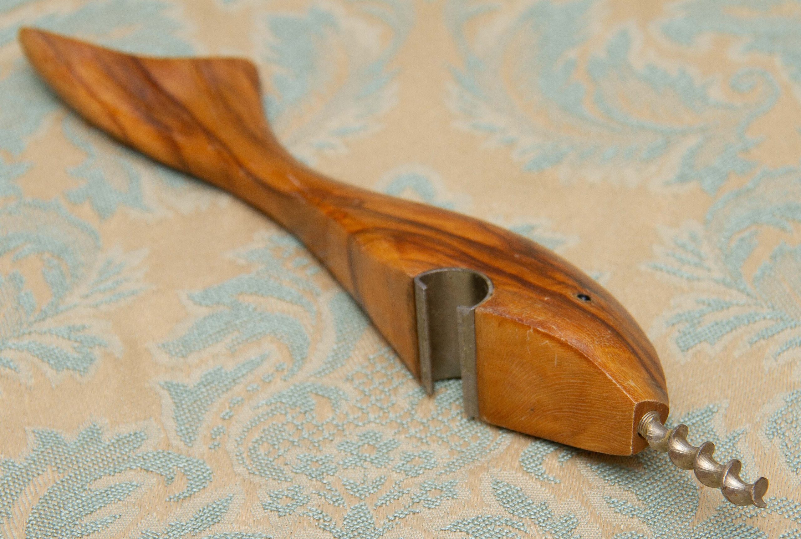 Wooden Shark Corkscrew Bottle Opener Vintage Wooden Bar Tenders Companion